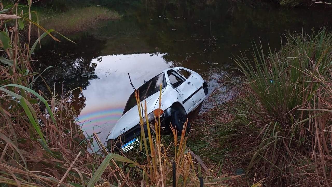 De acordo com o Corpo de Bombeiros, o motorista do carro perdeu o controle da direção, capotou na pista e o veículo acabou caindo em uma represa no bairro Fátima.