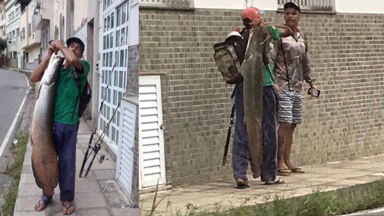 Parece história de pescador, mas não é!. Janiel Martins, 43 anos, morador do bairro Alto Amarelo, pescou na tarde do último sabado (6), um Pirarucu gigante no rio Itapemirim, na altura do bairro Baiminas.
