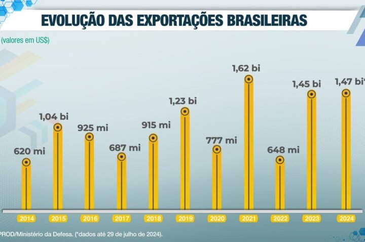 Até julho de 2024, exportações de produtos de defesa somaram R$ 8,4 bilhões superando o total do ano passado
