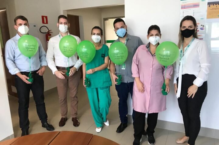 Ação com profissionais da saúde e clientes celebra um ano do Hospital Unimed, em Cachoeiro de Itapemirim