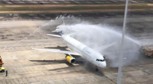 Acabou de pousar em Natal, no Rio Grande do Norte, o primeiro de dez aviões Airbus da nova empresa aérea brasileira, a Itapemirim Transportes Aéreos. A chegada da primeira aeronave foi transmitida ao vivo pela empresa aérea em suas redes sociais.