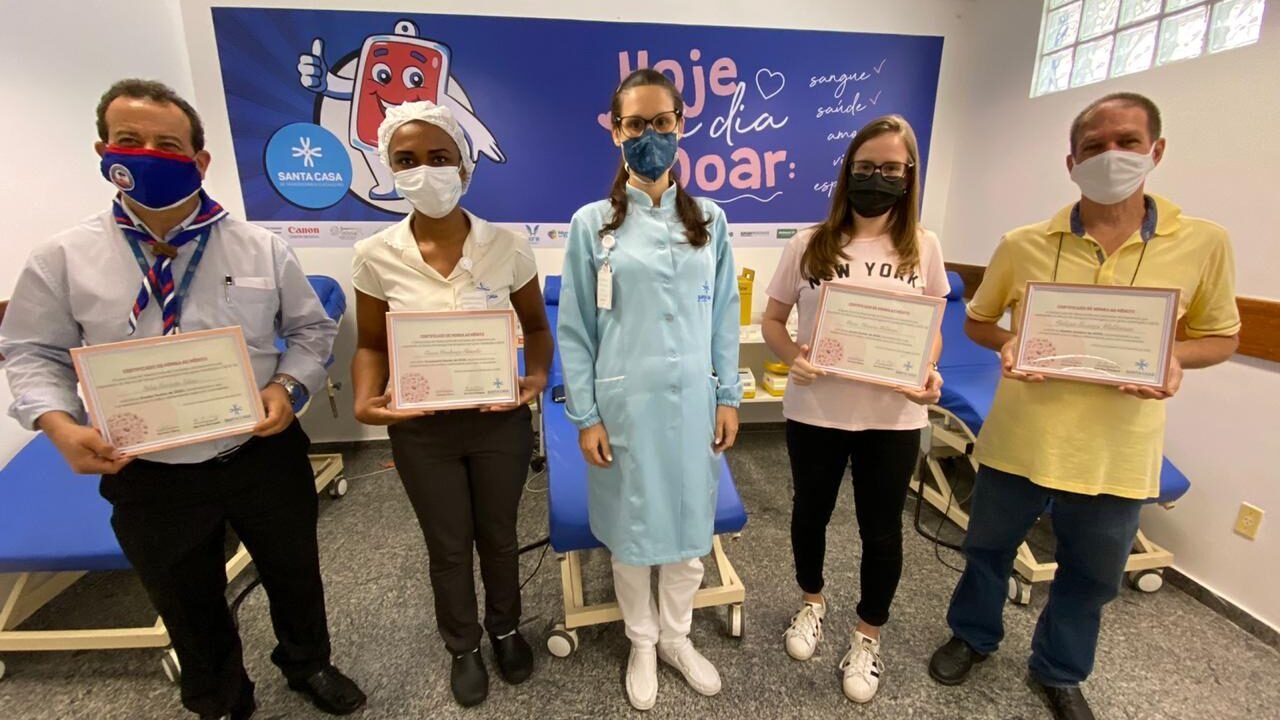 Ao todo, foram quatro doadores homenageados. A Eliane Mendonça recebeu o certificado representando todos os funcionários do hospital que são doadores de sangue. “Esse é um ato que admiro e tenho um sentimento de gratidão em poder ser doadora”, disse.