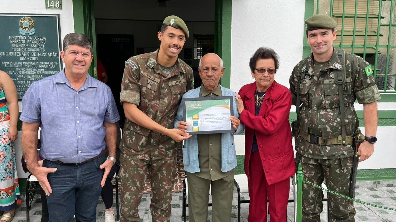 Ex-combatente faz 100 anos e recebe homenagem do tiro de guerra de Guaçuí