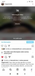 Nos dois casos, o conteúdo dos vídeos contém informações falsas, segundo o Instagram e, por isso, não foram ao ar. Essas proibições de conteúdos feitas pelo Instagram visam combater as fake News e evitar que mentiras sejam disseminadas, desencorajamento, por exemplo, as pessoas a se imunizarem contra o coronavíurs, sob argumentos irreais.