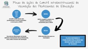 O Comitê Interinstitucional para Vacinação de Trabalhadores da Educação definiu que, a partir desta semana, a listagem e sua divulgação será realizado pelos municípios, para professores contemplados a cada fase da vacinação, e não mais disponibilizada no site da Secretaria da Educação (Sedu).