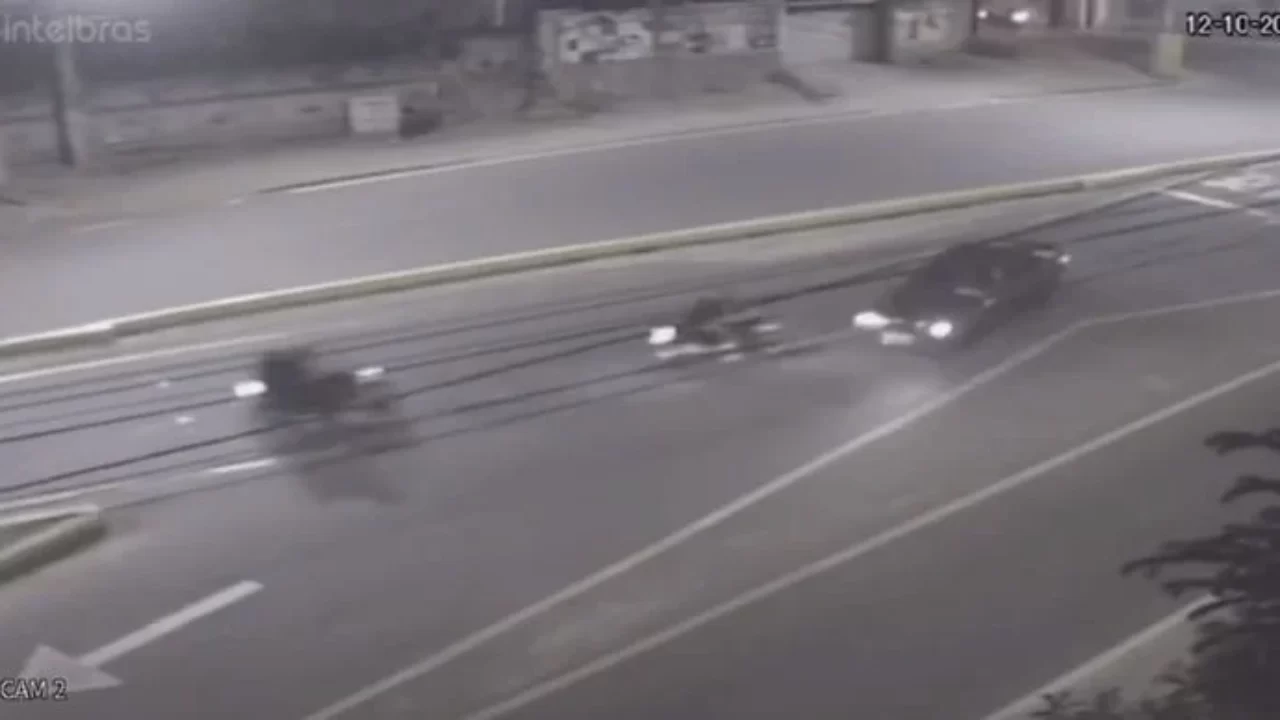 Um jovem de 21 anos ficou ferido e precisou ser socorrido após um carro atingir duas motos no bairro Jardim América, em Cachoeiro de Itapemirim, no Sul do Estado, na noite de quinta-feira (12). Câmeras de videomonitoramento mostram o momento em que o automóvel sai da Avenida Jones dos Santos Neves, em direção ao bairro IBC, e colide com os motociclistas que trafegavam no sentido contrário. Uma das vítimas precisou ser levada a um hospital, mas não há informações sobre o estado de saúde.