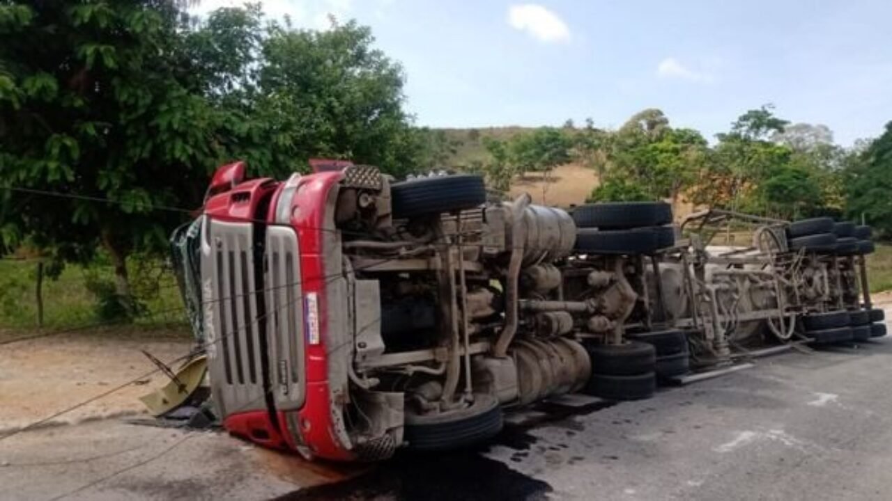 Um homem de 47 anos foi socorrido ao hospital após um caminhão carregado com cimento tombar na Rodovia ES 164, em Cachoeiro de Itapemirim, no Sul do Estado, na manhã desta sexta-feira (6).