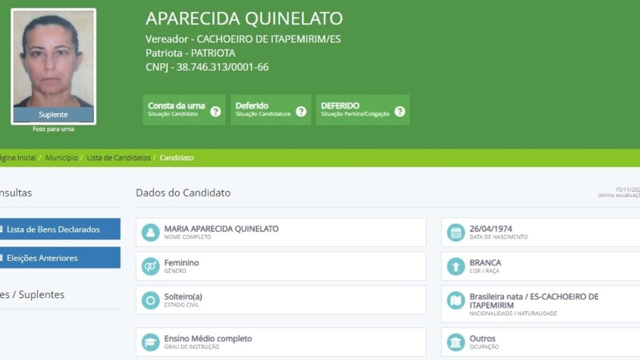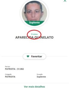 Em Cachoeiro de Itapemirim, caso semelhante levanta suspeita. Trata-se de Aparecida Quinelato, do Patriotas, partido que elegeu Ary Corrêa vereador. Além dela, outras três (PROS, PSC e PTB) não tiveram nenhum voto (ver imagem abaixo) e outra também do PTB teve apenas 1 voto.