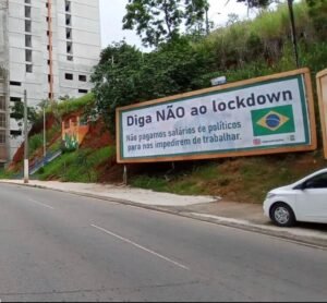 Um outdoor instalado em uma das principais avenidas de Cachoeiro de Itapemirim, a Francisco Lacerda de Aguiar, traz os seguintes dizeres: “Diga não ao lockdown – não pagamos salários de políticos para nos impedirem de trabalhar”.