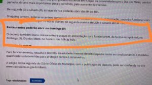 Prefeitura de Cachoeiro tenta, mas justiça proíbe funcionamento de restaurantes no Dia das Mães