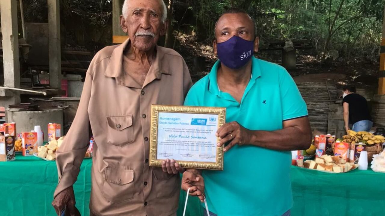 Os servidores da Secretaria Municipal de Obras, em Cachoeiro de Itapemirim, fizeram uma bonita homenagem hoje a Nilo Paulo Santana, conhecido com Seu Nilo, em virtude do Dia do Servidor, comemorado em 28 de outubro. Ele é aposentado, mas foi servidor do município durante 45 anos, entre 1967 a 2012, atuando como mestre de obras, tanto como efetivo, como com em função comissionada.