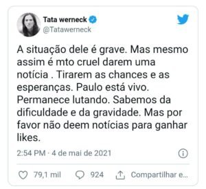 As críticas surgiram depois que o Balanço Geral divulgou foto em que os familiares do artista, que foram chamados para o hospital, aparecem aos prantos. Além disso, a emissora carioca decretou o falecimento do famoso, mesmo sem uma confirmação da família de Paulo ou de médicos.