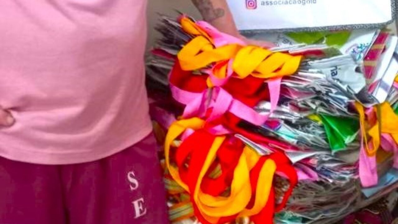 As lonas usadas para a produção foram recolhidas pela Associação Gold por meio de parcerias com diversas empresas e levadas até a unidade prisional.