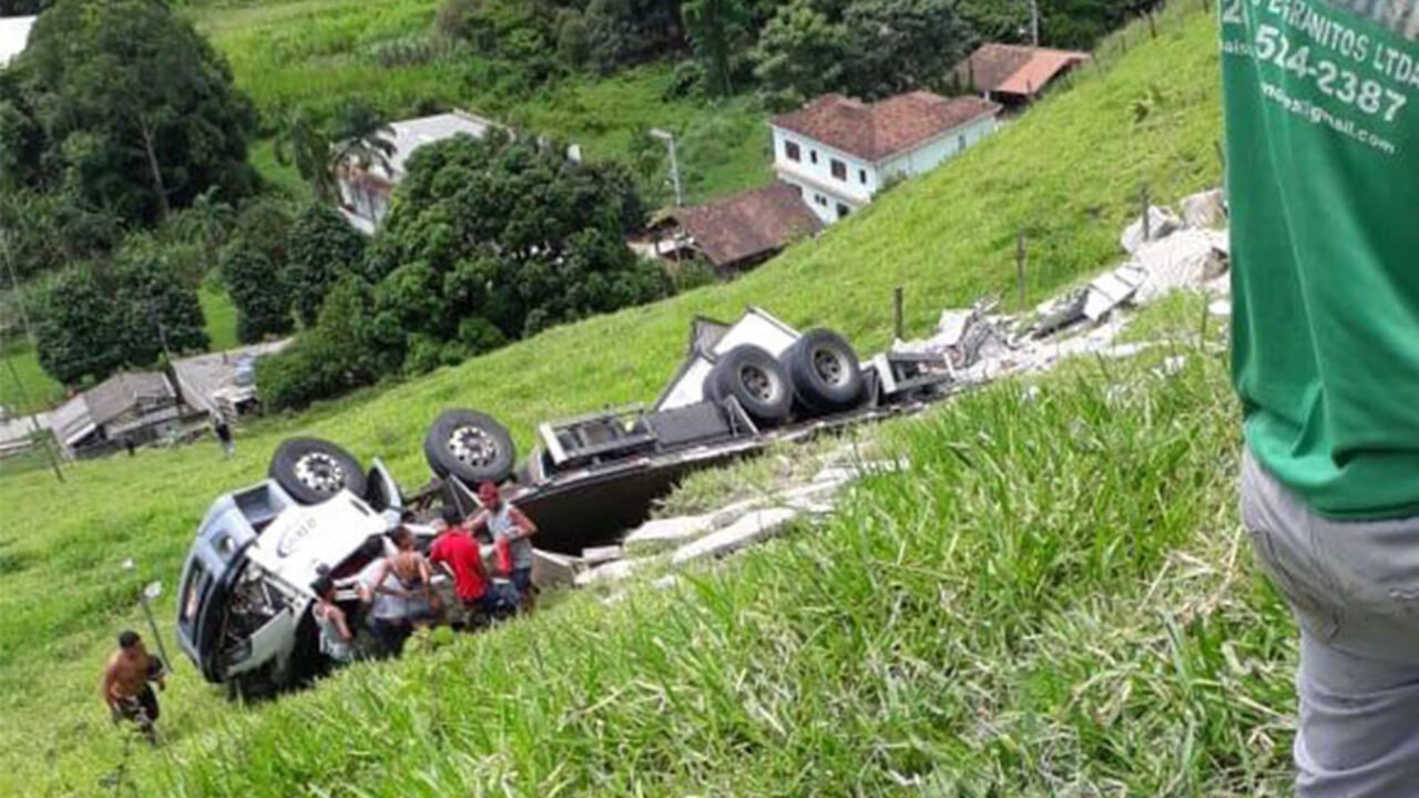 Um caminhão saiu da pista e tombou no início da tarde desta sexta-feira (18), na Rodovia ES-164, que liga Cachoeiro x Vargem Alta.